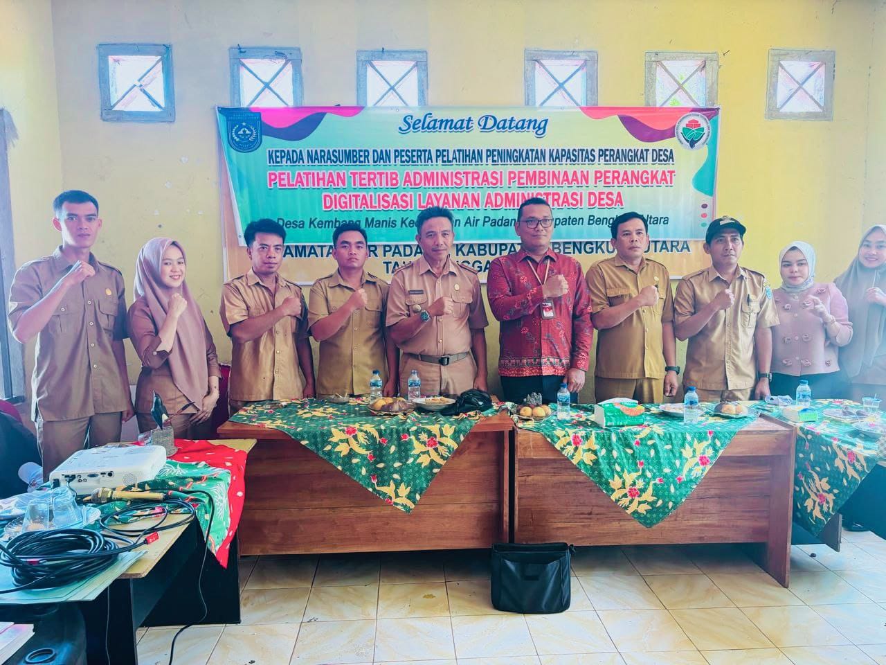 www.tras.id – Pemerintah Desa (Pemdes) Kembang Manis, Kecamatan Air Padang menggelar kegiatan Peningkatan Kapasitas Aparatur Desa di bidang Tertib Administrasi Pembinaan Perangkat Digital Layanan Administrasi Desa di AulaDesa Teluk Ajang Kamis, 26/08/2025.